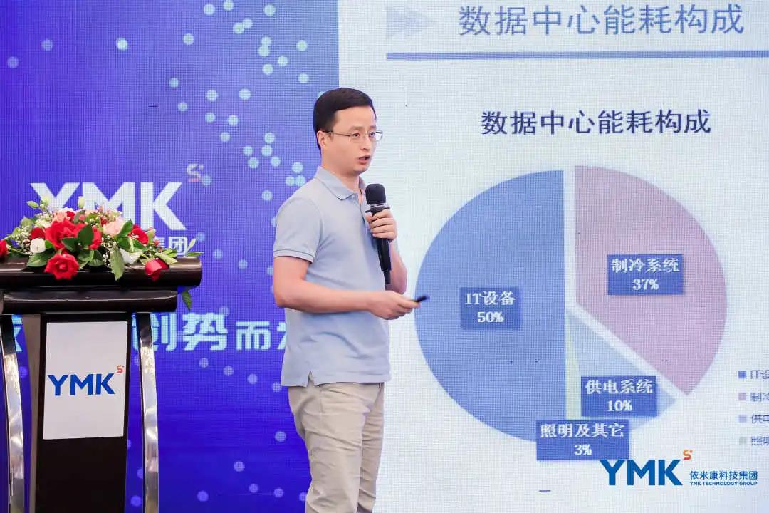 依米康產(chǎn)品經(jīng)理羅波先生為與會來賓詳解新品,變負(fù)荷調(diào)節(jié)、AI智能控制、多運行模式自動切換等特性,助力低PUE時代的數(shù)據(jù)中心高效能制冷。